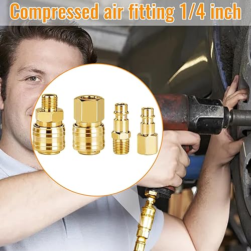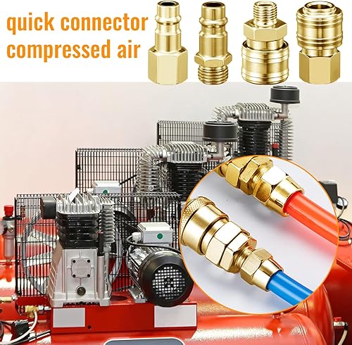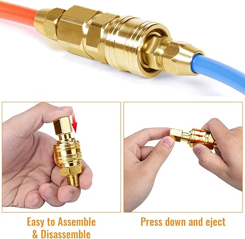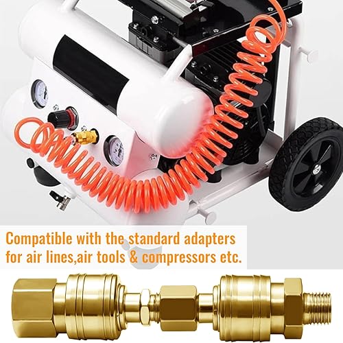 10 Pezzi Attacchi Connettore Rapidi Europei 1/4'Bsp Raccordi Aria Compressa, Rapido Per Innesto Aria e Connettori Maschio, Raccordi Aria Compressa Europei Femmina e Maschino(Oro)