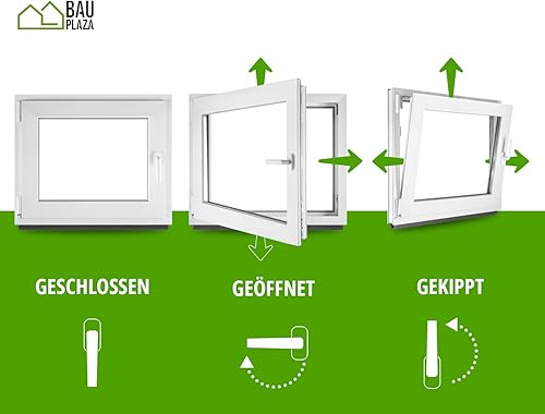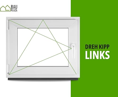 BauPLAZA - Finestra Serramenti in PVC - BIANCO - Vetro camera - LxA 115 x 60 cm Lato maniglsa: Sinistra LxA 1150 x 600 mm - Funzione Girevole - Ottima scelta