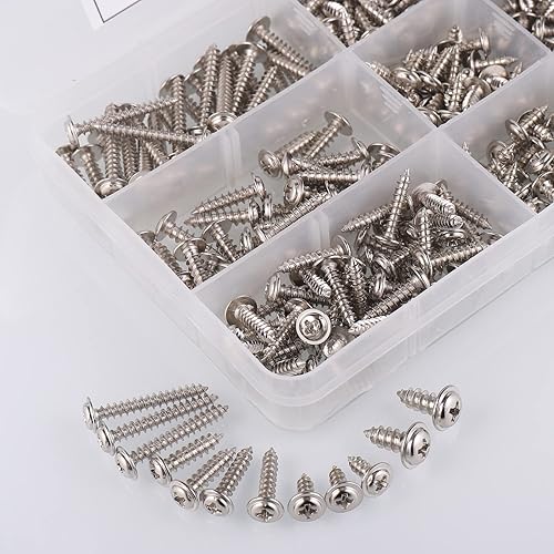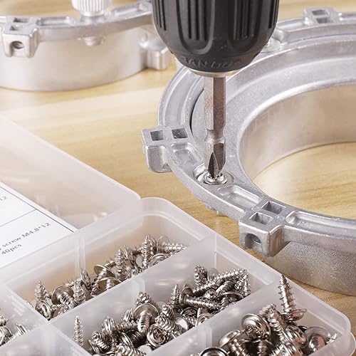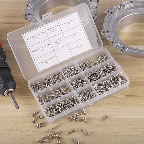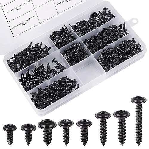 350 Pezzi Set Viti Autofilettanti - M3/M3.5/M4/M4.8 in Zinco Nero, Testa Piatta per Legno, Plastica e Metall Leggeri, Con Scatola di Plastica Organizzativa, Ideali per Fai da Te e Lavori Professionali