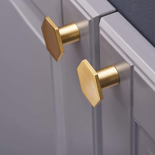 8 Pezzi Pomelli Dorati per Mobili, Maniglie in Ottone per Cassetti e Porte, Pomelli Esagonali per Armadi, Armadio da Cucina, Cassettiere, Comò, 35 x 20 mm, con Viti in 2 Misure