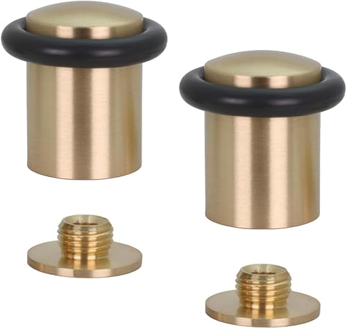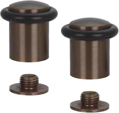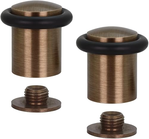 EVI Herrajes | Pack con 2 Fermaporte| Ø20 x 29 mm |Ottone Opaco con Gomma Nera di Silicone Naturale | Compresi utensile, vite + tassello di fissaggio| I-108
