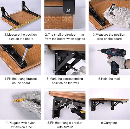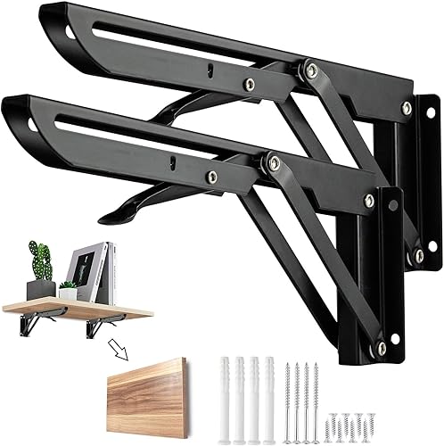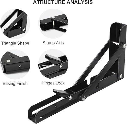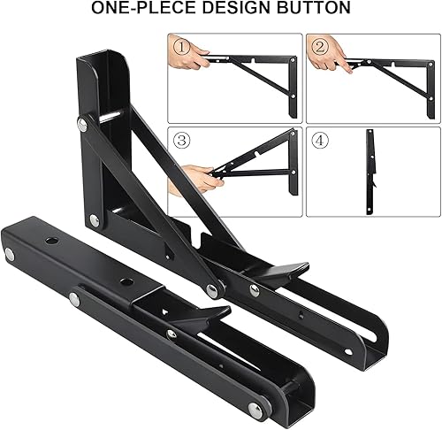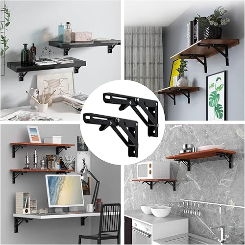 2 consolle pieghevoli da 600 mm, in acciaio inox, ad angolo di carico 110 kg, pieghevole per tavolo e supporto da parete, console per progetti fai da te (nero)
