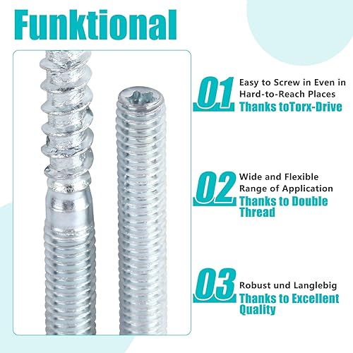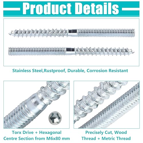 14 Pezzi Doppia Filettata Viti M6 X 80 mm con Azionamento Torx, Vite A Doppia Estremità in Acciaio Inox Zincato, Vite A Doppio Filetto, Bulloni A Doppia Testa per Viti Da Legno, Staffe Metalliche