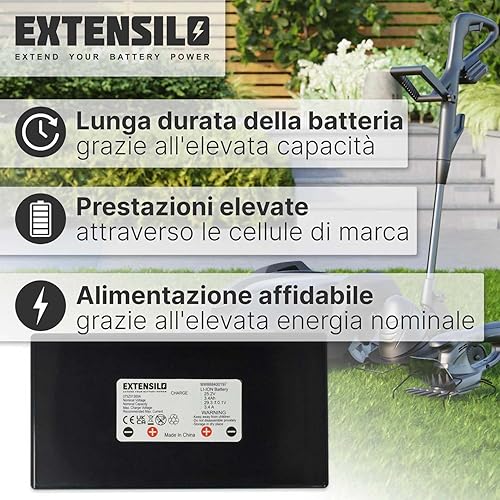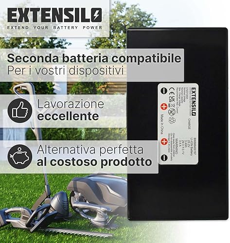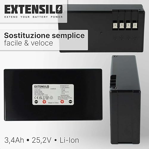 EXTENSILO batteria compatibile con Wiper C Xe, Ciiky XE, Ciiky XH, C12, C20, C6, C8, Joy tagliaerba, robot tagliaerba (3400mAh, 25,2V, Li-Ion)