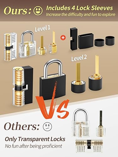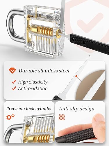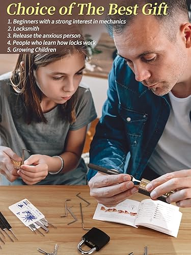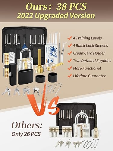 38 Pezzi Set Grimaldelli, [2022 Aggiornamento della Difficoltà] Set Fabbro con 4 Trasparente Serratura Lucchetto con Borsa e Istruzioni, Lockpicking Set per Fabbri Principianti ed Esperti
