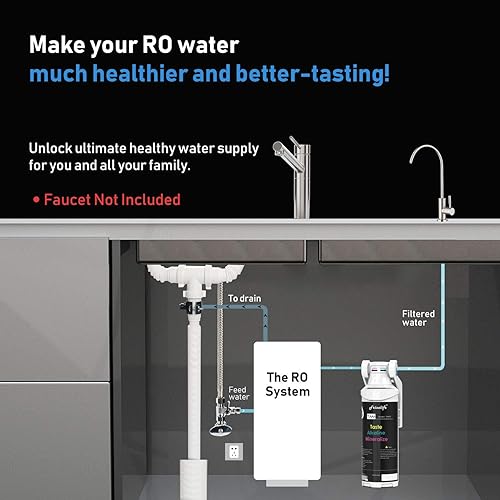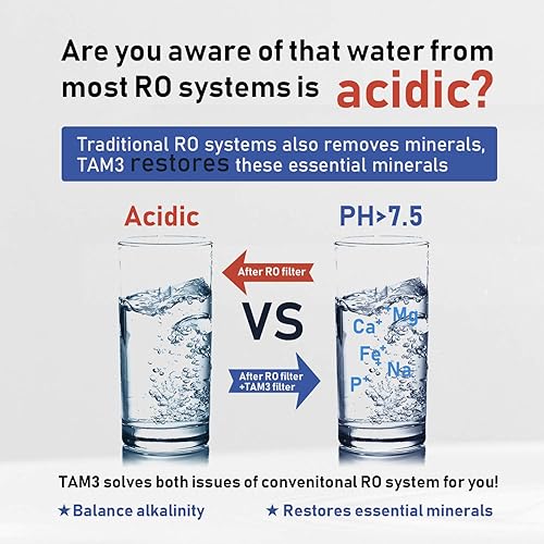 TAM3 - Filtro dell'acqua in linea sotto lavello, alcalino PH+, certificato NSF/ANSI 42, regola gusto e pH, ripristina minerali essenziali, tubo da 1/4' adatto per sistemi ad osmosi inversa
