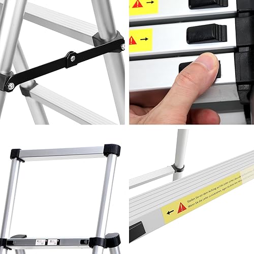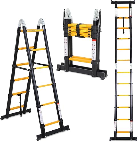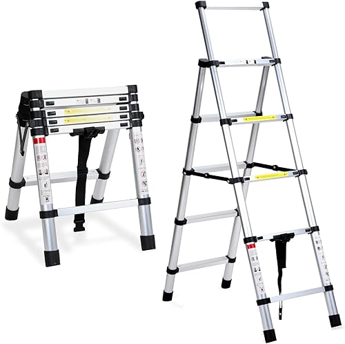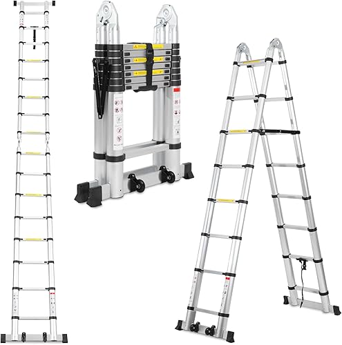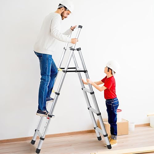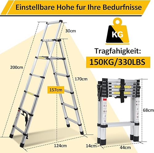 3,8 m (1,9 m + 1,9 m), scala telescopica ad A, in alluminio, con stabilizzatore, scala portatile, portata massima 150 kg, per interni ed esterni