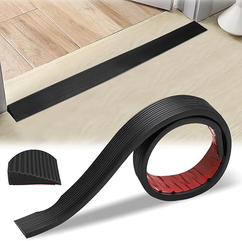 Rampa per soglia in gomma, profilo di transizione, autoadesiva, profilo di compensazione, rampa per soglia in gomma, per porte e passeggini, garage (nero, 5 x 1 x 200 cm)