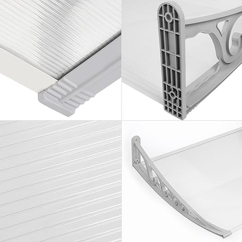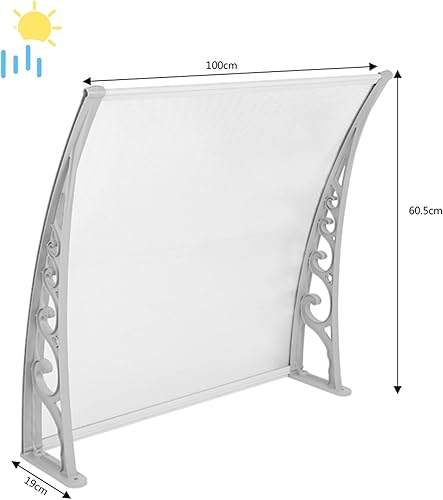 Pensilina Tettoia per Porta d'Ingresso,Pensilina Modulabile Tettoia per Porta o Finestra con Protezione UV Copertura in Policarbonato Parapioggia,60*100 cm (bianco)