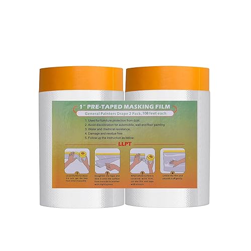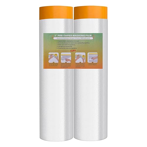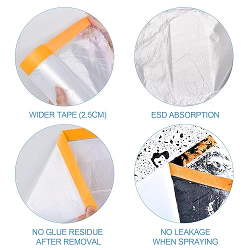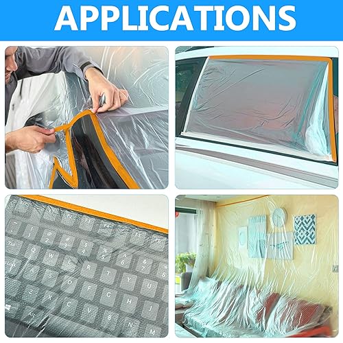Nastro e Drappo Pellicola per Mascheratura Pre-Nastrata 2 Rotoli 140cm (Non Piegata) x 33m per Verniciatura a Spruzzo per Pareti auto Protezione da Polvere (MFTO1433)