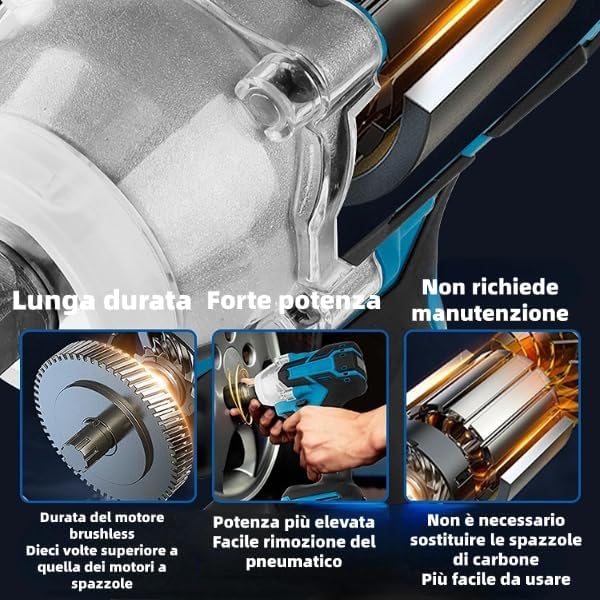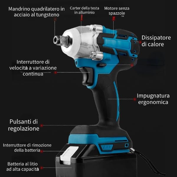 Avvitatore ad impulsi senza chiavi prese manuali chiavi dinamometriche spazzole Marhynchus 21V impugnatura antiscivolo Chiave elettrica a torsione grande per batteria ricaricabile