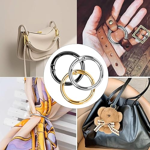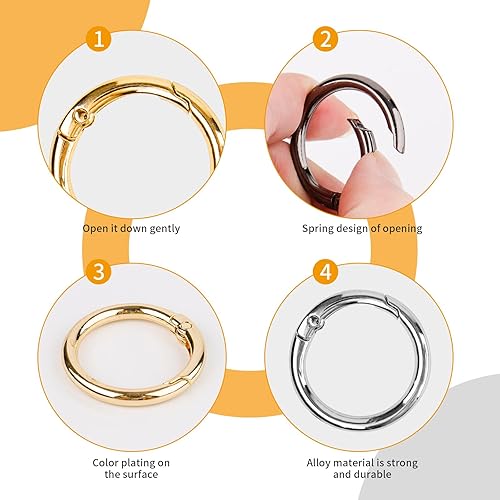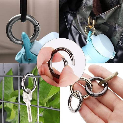 15 moschettoni rotondi in metallo, 33 mm, con apertura a molla, anello rotondo, moschettone a molla per portachiavi, artigianato, zaini, borse per il trasporto