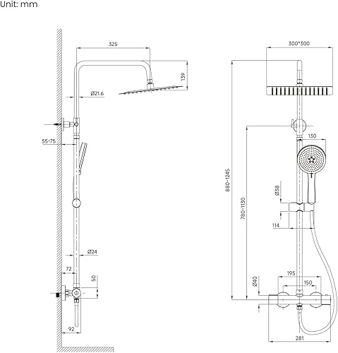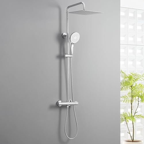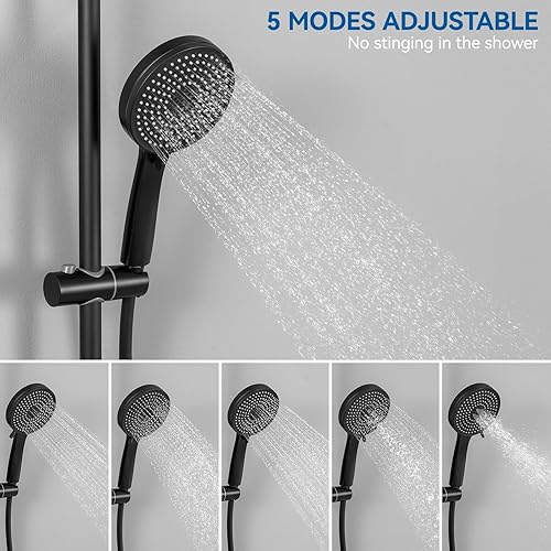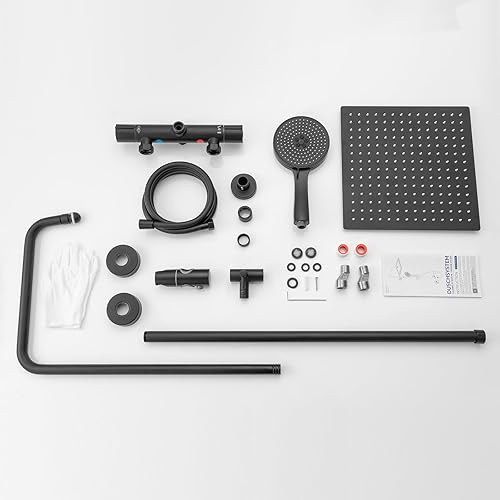 Colonna Doccia con Miscelatore Termostatico, Set Doccia con Soffione Grande in Acciaio Inox e Doccetta 5 Funzioni, Asta Saliscendi Doccia Altezza Regolabile (Nero)