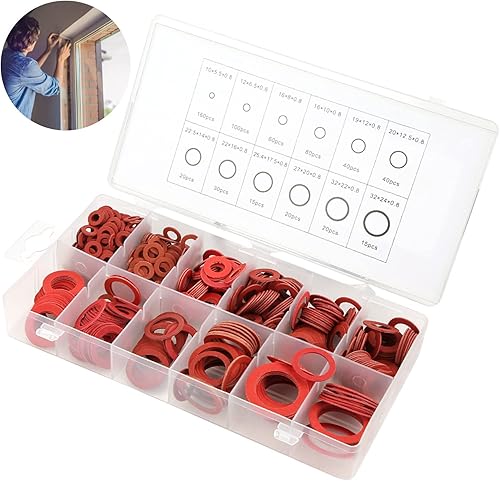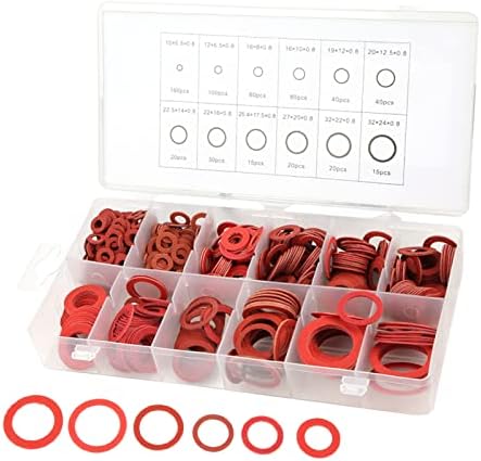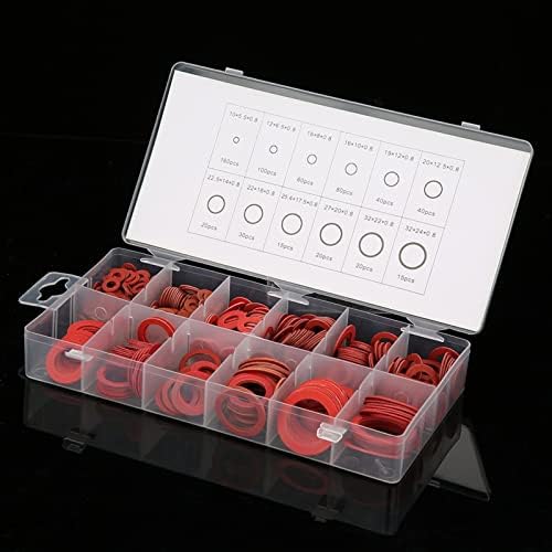 Kit di rondelle 600 pezzi, 12 misure Kit di rondelle piatte in fibra di carta in acciaio rosso per uso domestico Rondelle di isolamento marine automobilistiche Set assortito con scatola(#1)