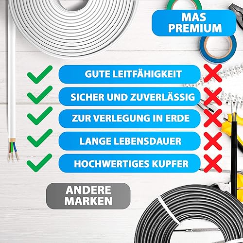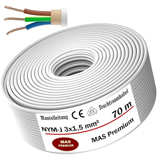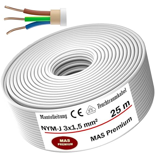 Cavo di alimentazione per ambienti umidi da 5, 10, 15, 20, 25, 30, 35, 40, 50, 75, 80 o 100 m, NYM-J 3 x 1,5 mm², cavo elettrico ad anello per installazione fissa