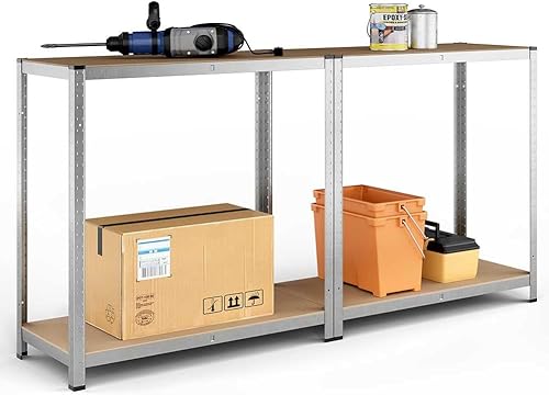 Scaffalature per carichi pesanti, set da 2, mensole da cantina, 180 x 90 x 40 cm, portata fino a 875 kg, scaffali, scaffali, struttura in acciaio rinforzato, 5 ripiani regolabili, argento, P114