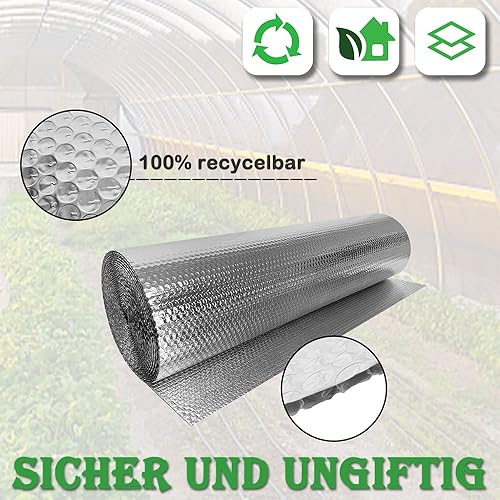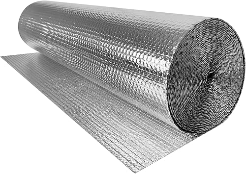 Foglio Isolante Termico 1m x 20m Foglio Isolante in Alluminio a Doppia Bolla d'Aria Pellicola Riflettente Ritenzione del Calore Pellicola Isolante Oscurante per Pavimenti Finestre Garage