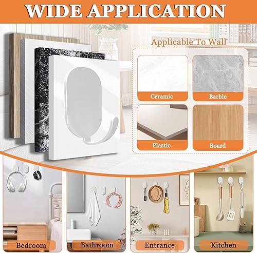12 Pezzi Ganci Adesivi Ganci Bianco, Gancio Adesivo da Parete per Bagno Bianco, Gancio Antiruggine Gancio per Asciugamani da Cucina Senza Foratura Gancio Autoadesivo (Bianco)