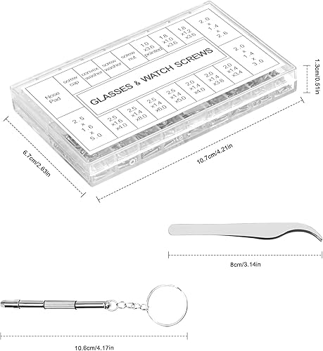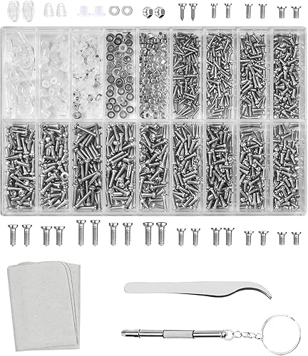 1000 Pezzi Kit di Riparazione Occhiali, Micro Kit di Riparazione Viti, Assortimento Tool Kit con Cacciavite, Strumento di Riparazione Degli Occhiali Kit per Orologi Cellulare Gioielli Elettronico