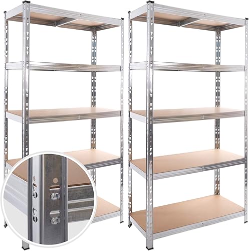 2x Scaffali a 5 Ripiani in MDF Modulabile Metallo Zincato, 90LX40PX180H cm,Scaffale Metallo per Carichi Pesanti,Portata Massima 875Kg