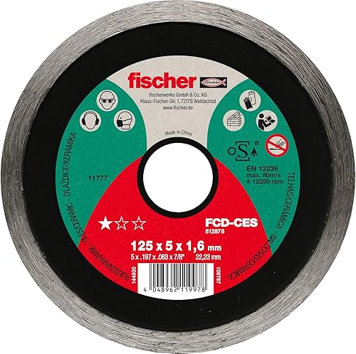 Fischer FCD-CES 125x2,2 DIA Disco da Taglio Diamantato Corona Continua per Taglio Preciso Piastrelle, per Smerigliatrice Angolare, 1 pz