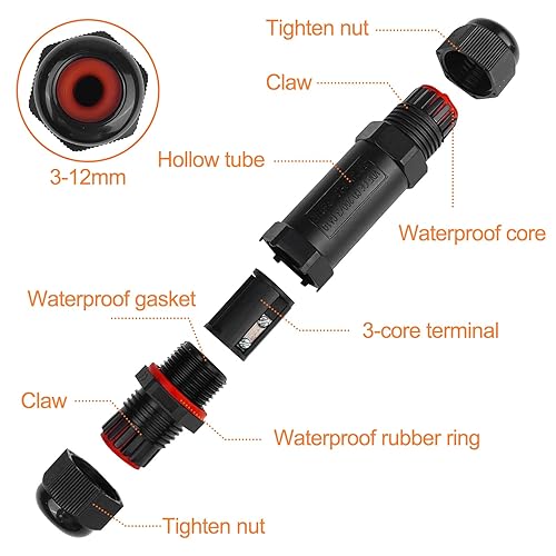 4 Pezzi Connettori Elettrici Impermeabili, Connettore Stagno, Scatola di Giunzione, Manicotto di Collegamento Cavo, Cassetta Derivazione Stagna per Diametro Cavo 5-9 MM, 9-12MM