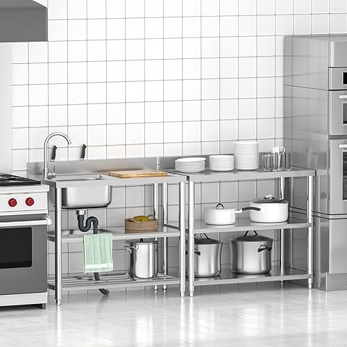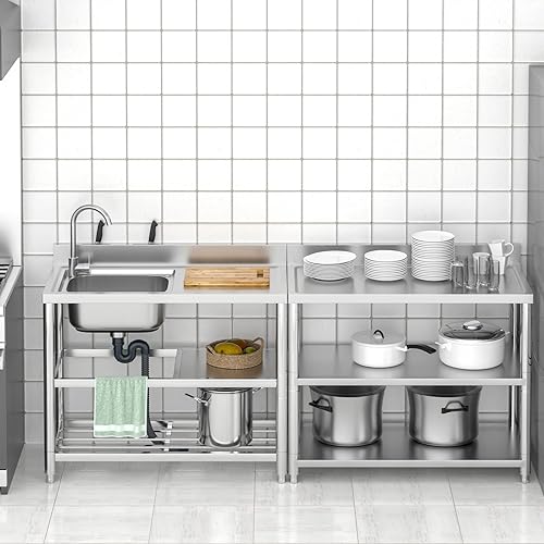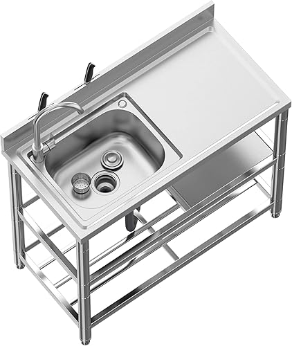 Lavello in Acciaio Inox Professionale 1 Vasca (Sinistra), 100 × 50 × 94 cm Lavandino Commerciale con Rubinetto, Lavello da Cucina Autoportante per Cucina, Ristorante, Caffè, Garage, Interno, Esterno