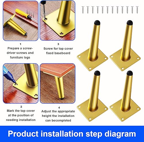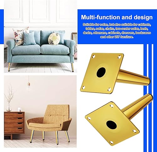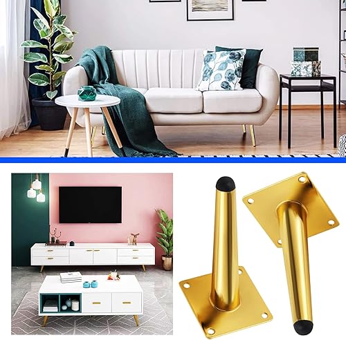 4 Pezzi Piedini per Mobili 15 cm, Oro Gambe di Mobili Coniche Piedi per Divano in Metallo Piedi in Ferro per Tavolino Gambe per Divano Tavolino Armadi, Capacità di Carico 300 kg