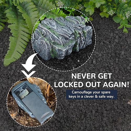 Nascondiglio Chiave Pietra con Scomparto Segreto, Finta Pietra Nascondiglio Chiave per Esterni, Giardino e Al di Fuori, Roccia Artificiale in Resina per Geocaching (Grigio Chiaro)