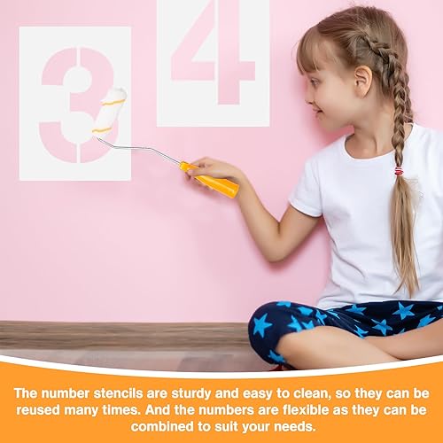 10 Pezzi 30cm Stencil con Numeri Grandi con Mini Rullo di Vernice Grande Numero 0 a 9 Stencil Riutilizzabili Stencil con Numeri in Plastica per Pittura DIY Mailbox Segnali Road Parking Lot