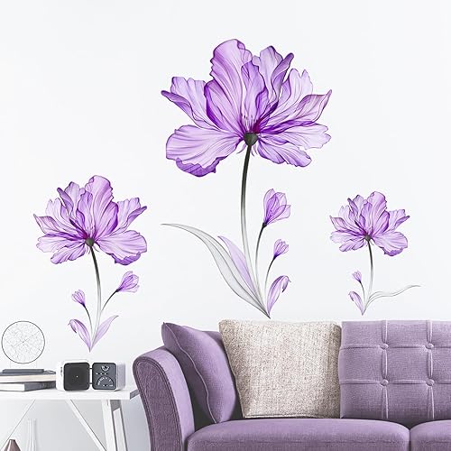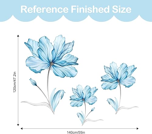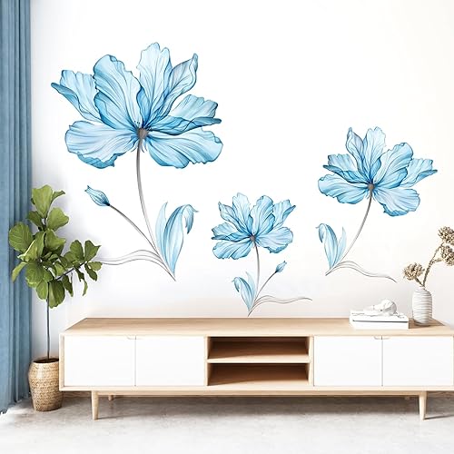 Fiori Blu Decalcomania Murale Fiori Grandi Adesivo Murale Piante Adesivo Murale Autoadesivo Rimovibile Adesivo Murale per Soggiorno Camera da Letto Uffici Bagno Decorazione Murale