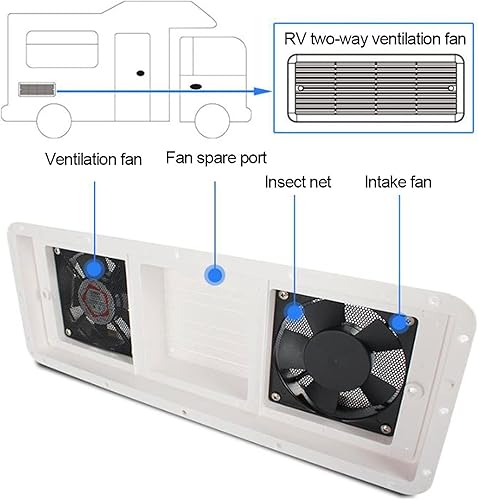 Estrattore Aria Ventilatore ventilazione camper for CAMPER Trailer Caravan lato uscita aria scarico ventilatore rettangolare doppio ventilatore ventilatore ventilatore, bianco Ventilatore di Scarico