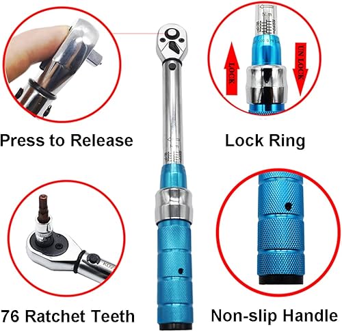 ThreeH Chiave Dinamometrica a Libbra in pollici 1/4-inch Drive 1-6 Nm/0.7-4.5ft-lb Kit Manutenzione per Biciclette per bici da Strada e Mountain Bike Moto Multitool