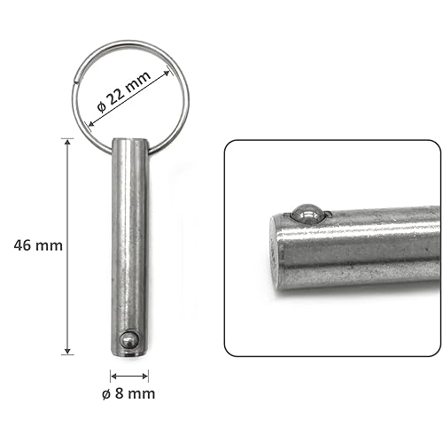 Bullone di sicurezza 8 x 46 mm (4 pezzi) con fusibile a sfera e anello, bullone a innesto a sfera, perno ad anello in acciaio inox