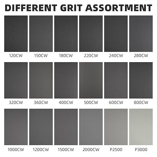 Set di 18 fogli di carta vetrata bagnata, 23 x 28 cm, grana da 120 a 3000, bagnata e asciutta, per auto, fari, mobili in legno, metallo, pietra, vernice, pareti, vetro