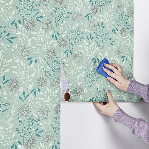 Carta Da Parati Adesiva Muro Floreale Vintage Carta Da Parati Foglie Verde Camera Da Letto Carta Adesiva Per Mobili Fantasia Carta Parati Adesiva Verde Pellicola Per Mobili 44,5 x 300 cm