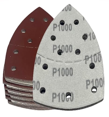 Levigatrice triangolare per carta vetrata | Levigatrice multiuso per carta vetrata | grana 240-1.000 | 20 fogli ciascuno | 100 pezzi | Triangoli di levigatura Prio 105x152 | Carta vetrata fine