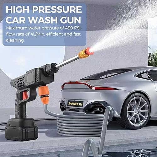 Idropulitrice a pressione senza fili da 22 bar, tubo da 5m, idropulitrice portatile con 2 batterie ricaricabili da 6000mAh, idropulitrice per pulizia e irrigazione di auto/pavimenti/giardini