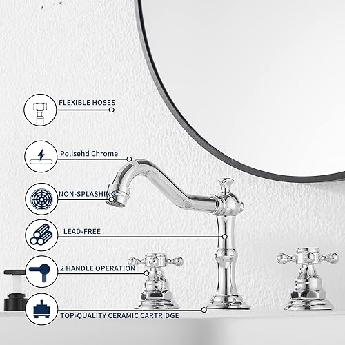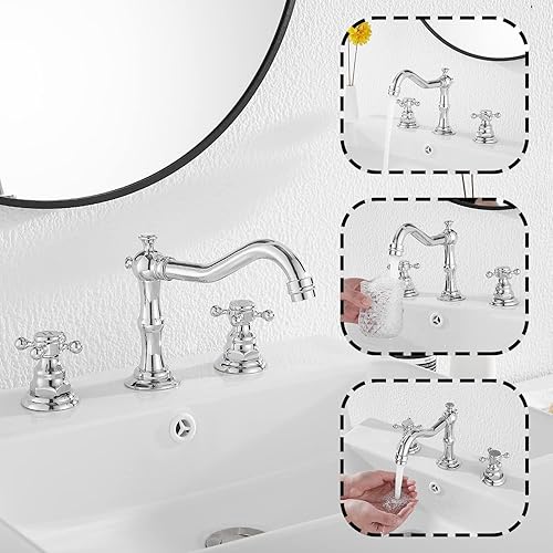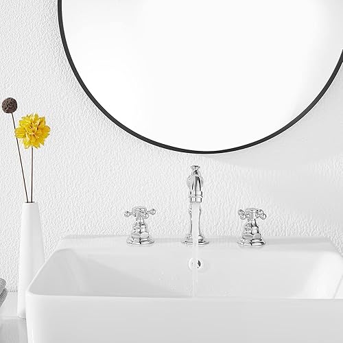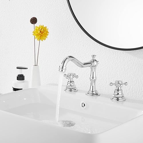 Rubinetto miscelatore vintage a 3 fori per lavabo a doppia maniglia diffuso per lavabo da bagno rubinetto per vasca da bagno, montaggio su piano, 20,3 cm, 2 maniglie e 3 fori, rubinetto cromato