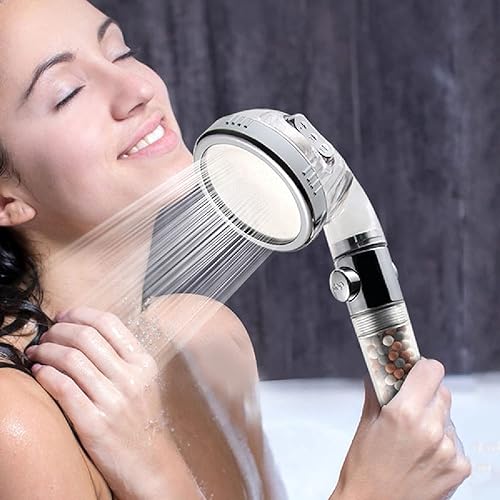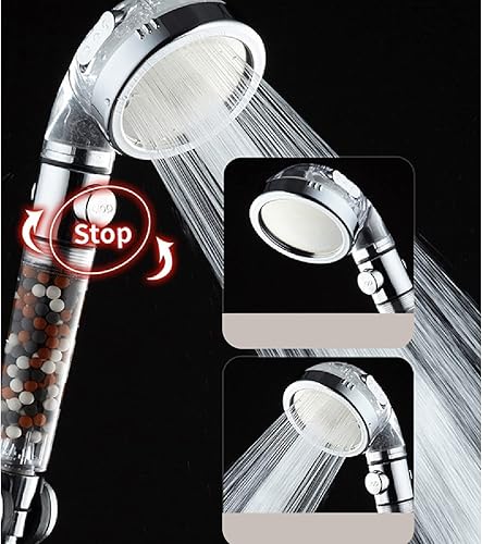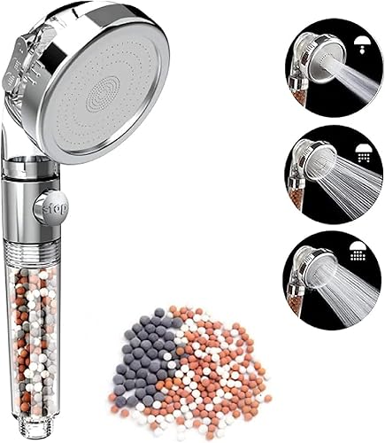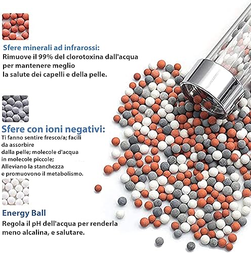 Soffione Doccia con Anticalcare - Soffione Doccia Alta Pressione 3 tipi di Getto - Risparmio idrico Filtro e Sfera Minerale