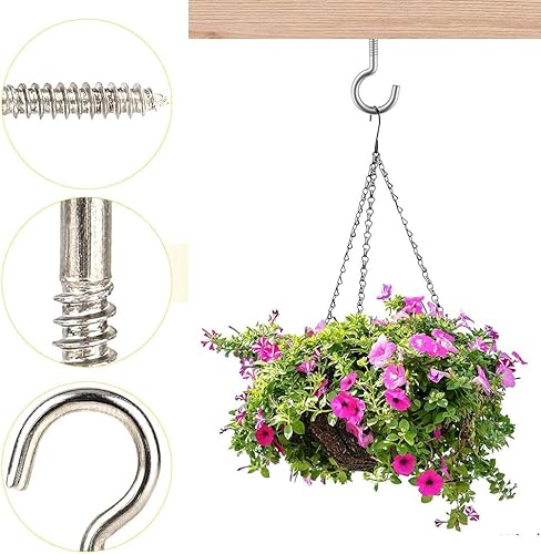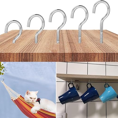 10 Pezzi Ganci Avvitabili in Acciaio Inox, Viti per Occhielli Autofilettante per Legno, Gancio a Soffitto, Con Punto Interrogativo, a Forma di C, a Vite