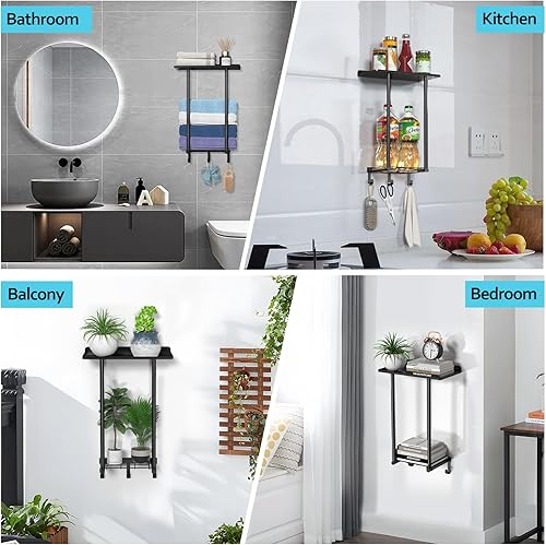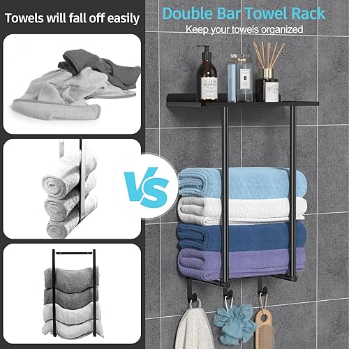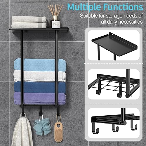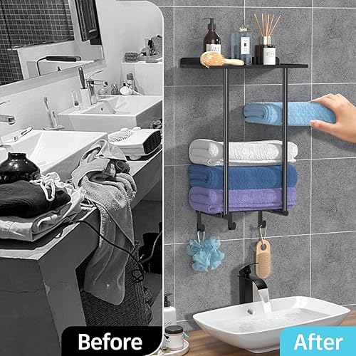 Porta Asciugamani Bagno Nero, Piantana Portasciugamani da Parete con 3 Ganci, Mensola per Cucine, Ospiti e Soggiorni