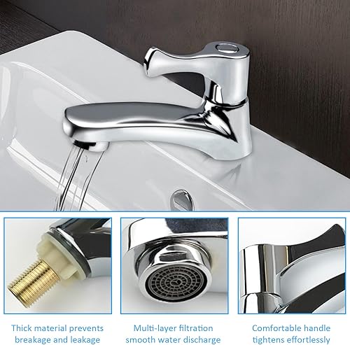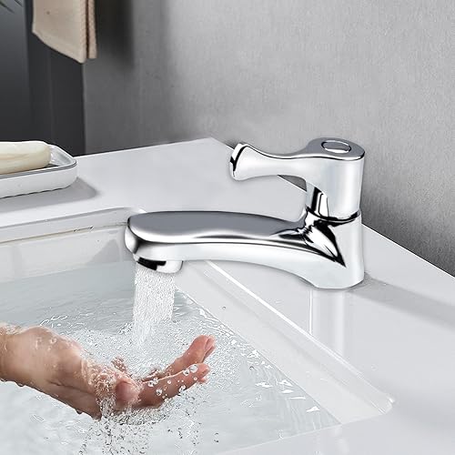 Plstod Rubinetto Acqua Fredda, Rubinetto Bagno Lavabo, Miscelatore Lavabo Bagno per Fredda, Monocomando Rubinetto Lavandino Bagno, Monoforo Rubinetti Bagno con Tubo Collegamento da 60 cm, Argento