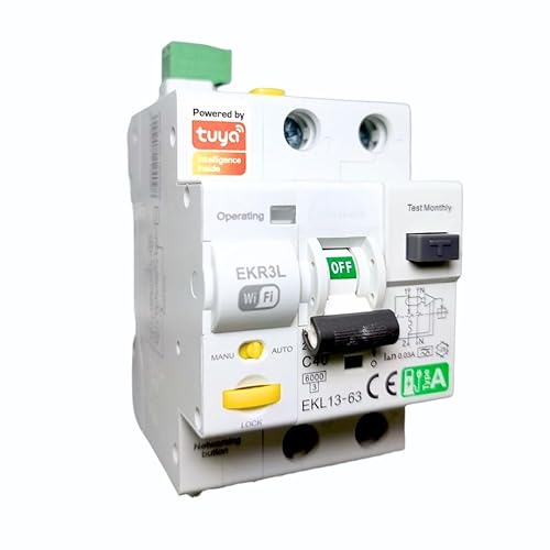 'Differenziale Ripristinabile con WiFi Superimmunizzato WiFi Ripristinabile Auto Classe A con Riconnessione Automatica Classe A 40A 30mA 6kA Interruttore Ripristinabile per Binario DIN