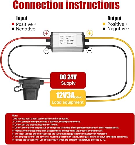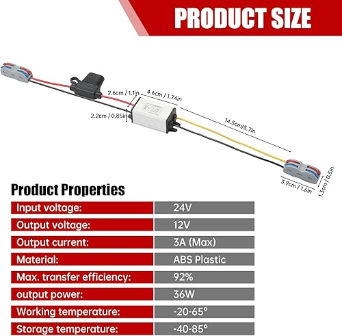 Convertitore di tensione step down DC 24V a 12V 3A, Riduttore di tensione del regolatore di potenza da 36W impermeabil Modulo di alimentazione step-down (Ingressi DC15-35V)