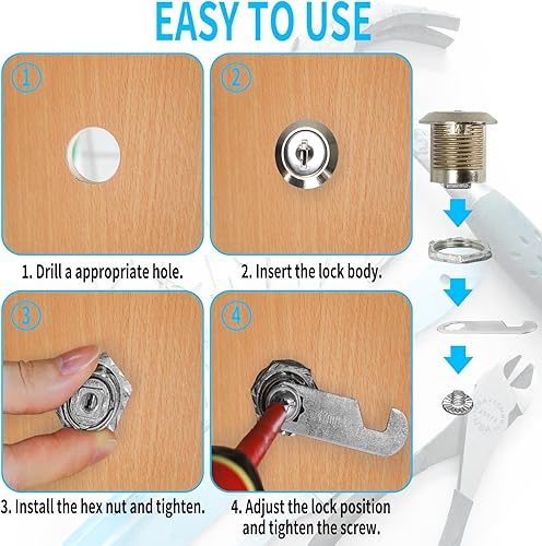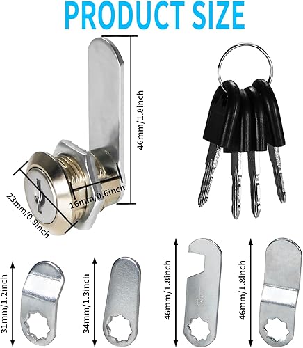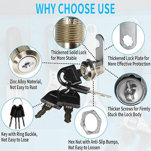 16mm Serrature di Sicurezza Cassetta Delle Lettere, Durevole Serratura Cassetta Postale con Piastre di Bloccaggio, Cabinet Serrature a Camma con Chiavi per Armadi Dresser