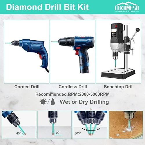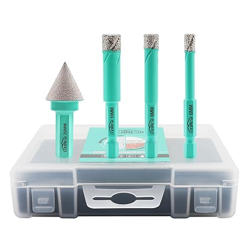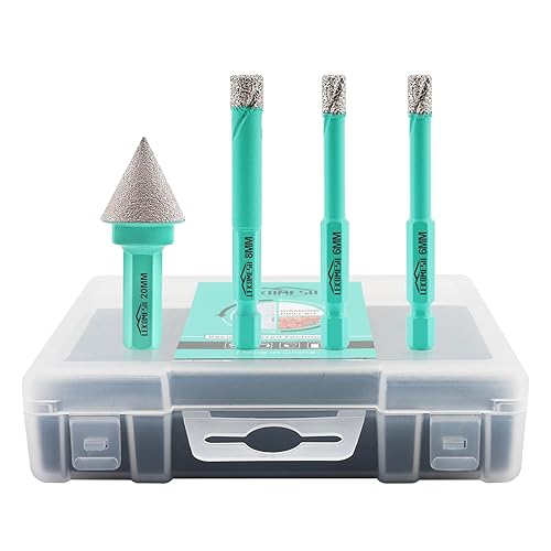 Set di Punte Diamantate - 3pcs 6/6/8MM Punte Trapano Piastrelle & 1pc 20MM Punte Fresa Diamantate con Gambo Esagonale per Ceramica Marmo Granito Pietra Quarzo,LEKOMESH