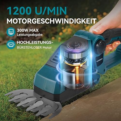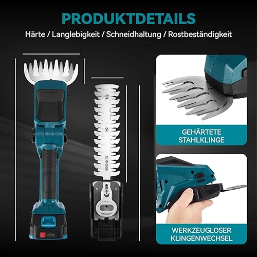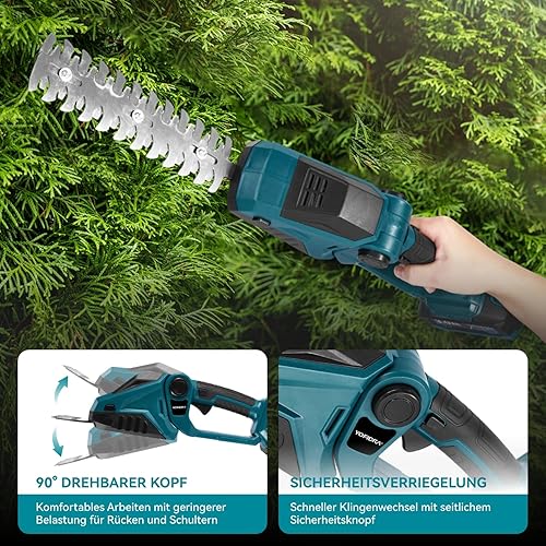 Tagliasiepi a batteria per tagliare, tagliare e tagliare arbusti, con batteria 2 x 2,0 Ah