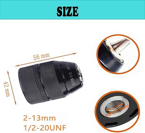 Adattatore mandrino a sgancio rapido, 2 – 13 mm 1/2 – 20UNF SDS per mandrino, mandrino autoserrante, utensili elettrici a mano con adattatore SDS Plus (2-13 mm 1/2-20UNF)