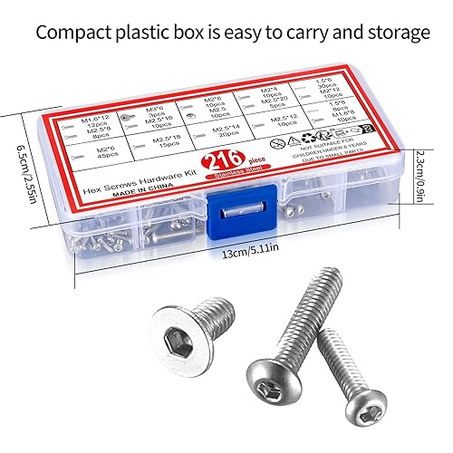 216 Pz Viti a Testa Bombata Esagonale e Dadi Kit, Set di Viti a Esagono Incassato Bulloni a Testa Esagonale Assortimento Kit, Viti e Dadi a Testa Bombata Esagonale, Vite Testa Bottone Brugola